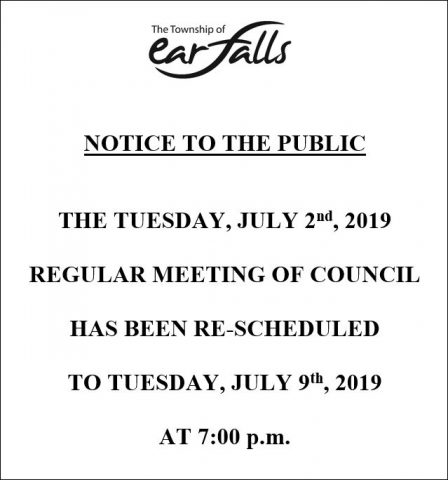 Regular Meeting of Council is Re-Scheduled to July 9, 2019